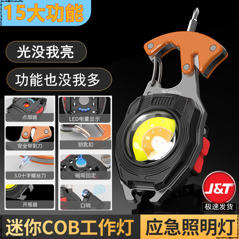 2025 多機能屋外照明ポータブルライト強力な光懐中電灯充電式キーホルダーワークライト USB シガーライター 6