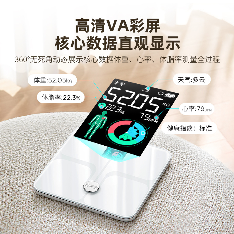 体脂肪計、体重測定アプリ連携、8電極、カラースクリーン、減量・脂肪減少、スマート電子体重計、精密計量