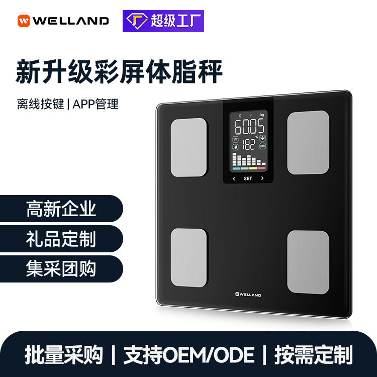 国境を越えた新型八電極体脂秤知能電子秤測定脂カラースクリーン電子称180kg bluetooth体重秤