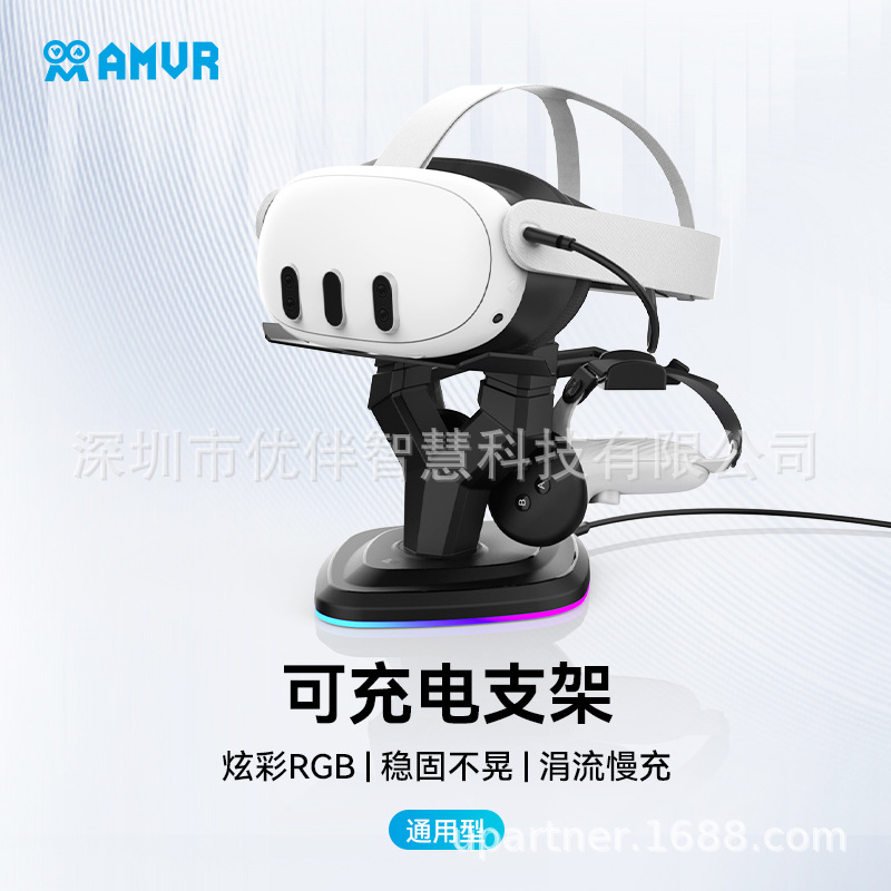 AMVR は Quest 2/3/3S/Pico 4VR ヘッドセットストレージ 15 ワット充電スタンド RBG 照明効果に適しています