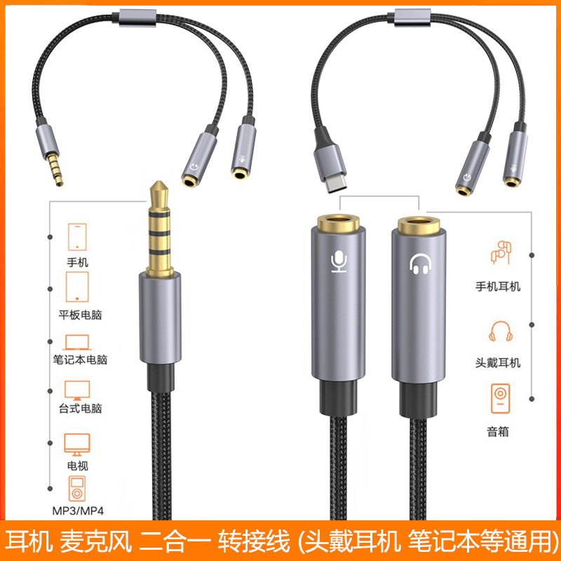 3.5mmイヤホンマイク2 in 1アダプタヘッドセットのノートパソコン変換器Type C