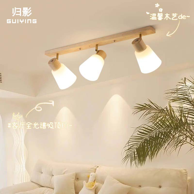 原木風スポットライトled天井灯家庭用明装壁灯客間背景壁フード間広東中山灯具