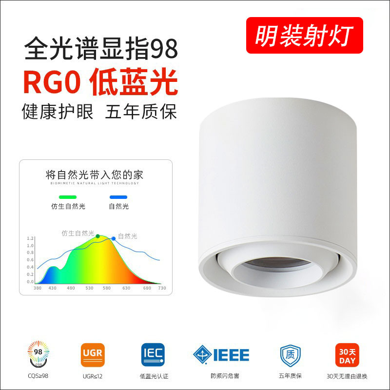 スマート米家明装スポットライトled深蔵グレア無開孔筒灯丘コブ明装防眩暈筒灯