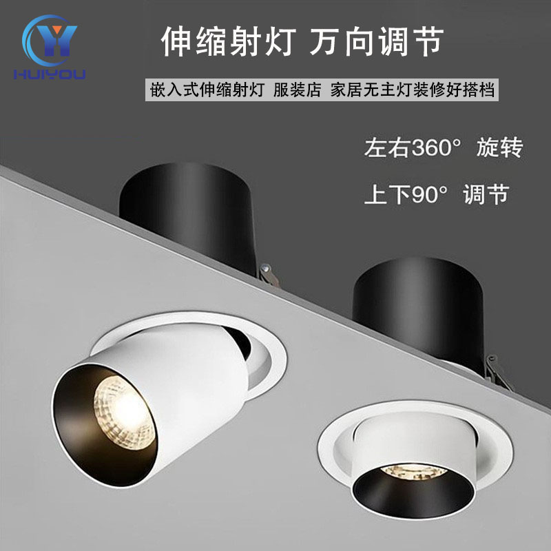 LED調節可能な伸縮式スポットライト展示室の背景壁COB埋め込み式自在360 ° 回転伸縮式ライト