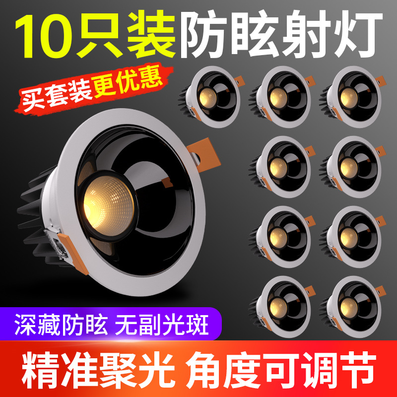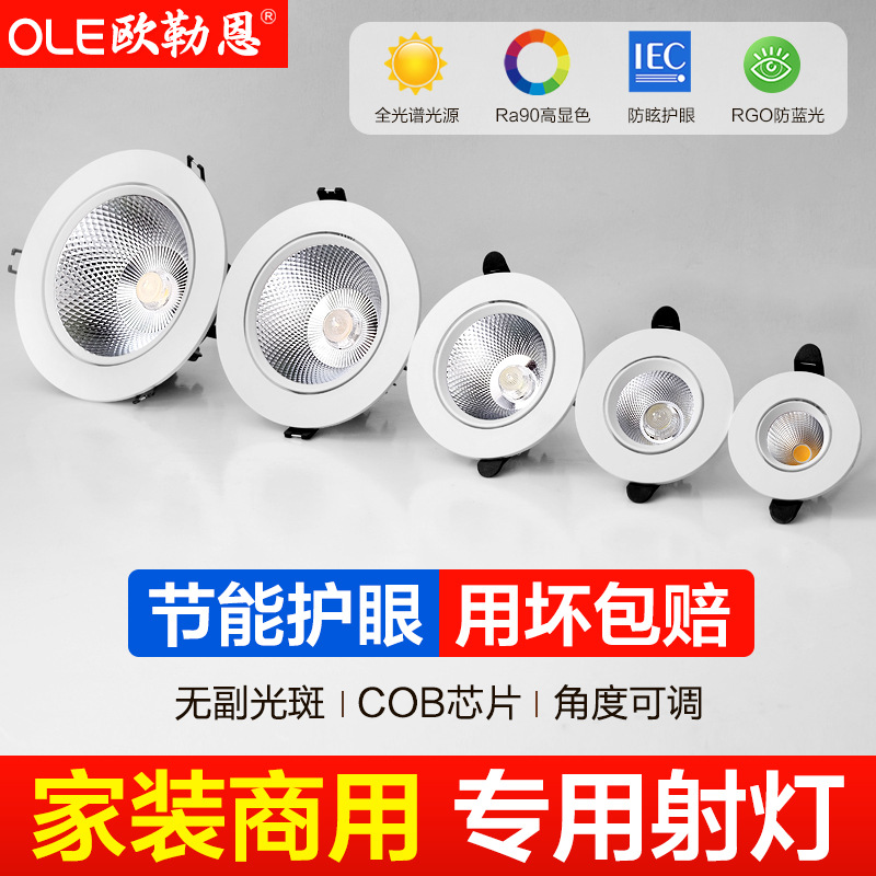 スポットライトled天井灯家庭用組み込み式洋服店穴開けダウンライト背景壁cob5w7w集光牛眼灯