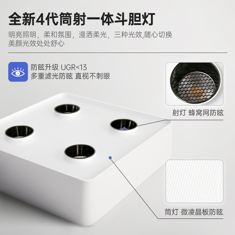 ハイエンドの極めてシンプルな四頭のダウンライトのスポットライトが一体となりました。