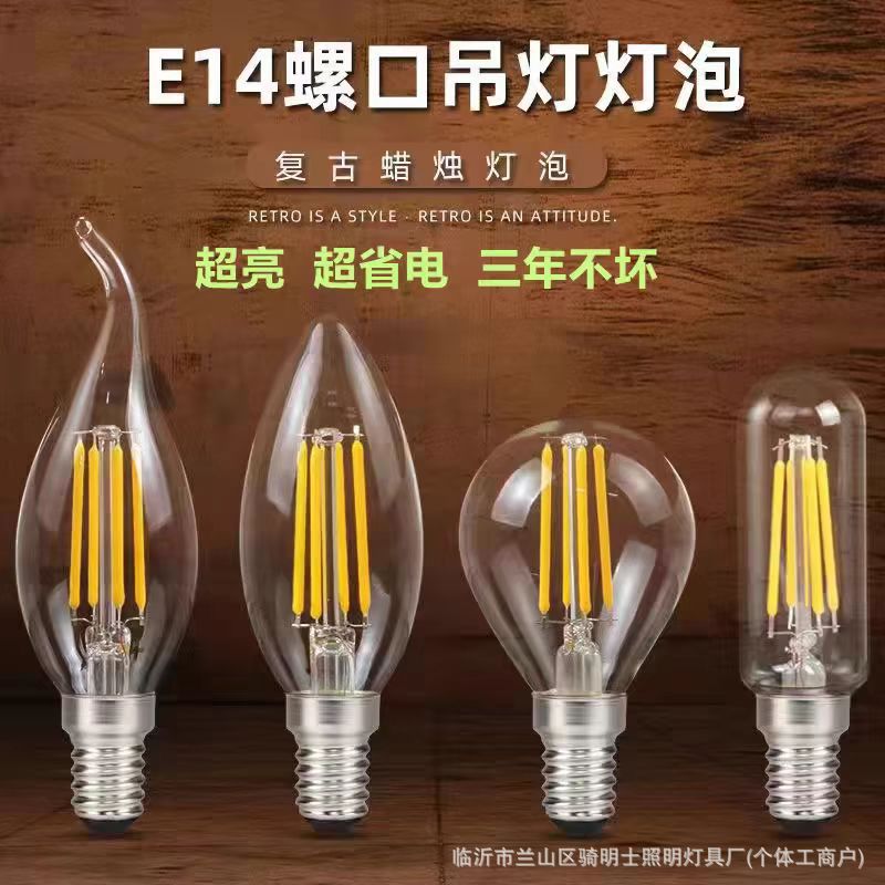LED電球小ネジ口ろうそく水晶灯暖光尖泡C35タングステン線レトロ室内超亮吊口電球
