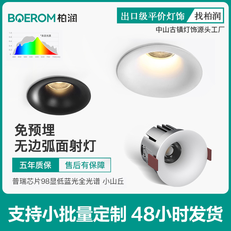 縁なし新型埋め込み型円弧面非埋め込み深杯75筒灯家庭用リビングルームの天井灯丘スポットライト