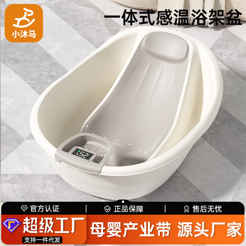 公式自営店丸雅ベビーバス、温度感知機能付き、座ったり寝転んだりできる折りたたみ式大型浴槽、新生児用