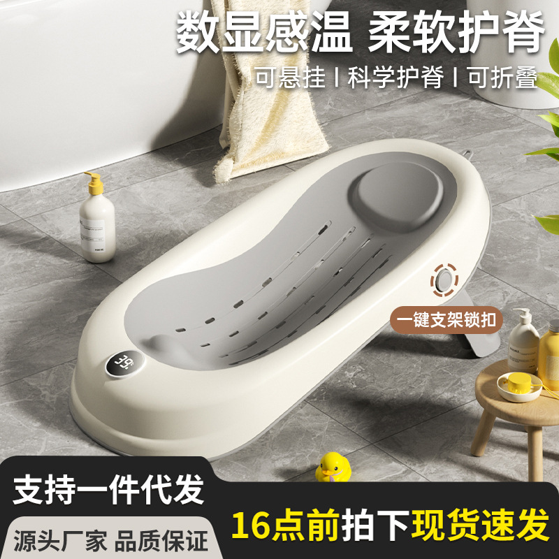 温度感知バスラック、ベビーバスリクライニングサポート、滑り止め新生児用品、バスネット、バススタンド、座ったり寝転んだりできる子供用バスベッド