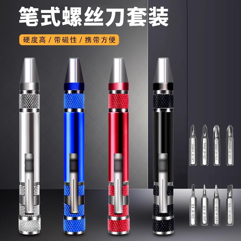 多機能マグネットドライバー八合一ペン型アルミ合金解体ドライバー一字十字ドライバーセット