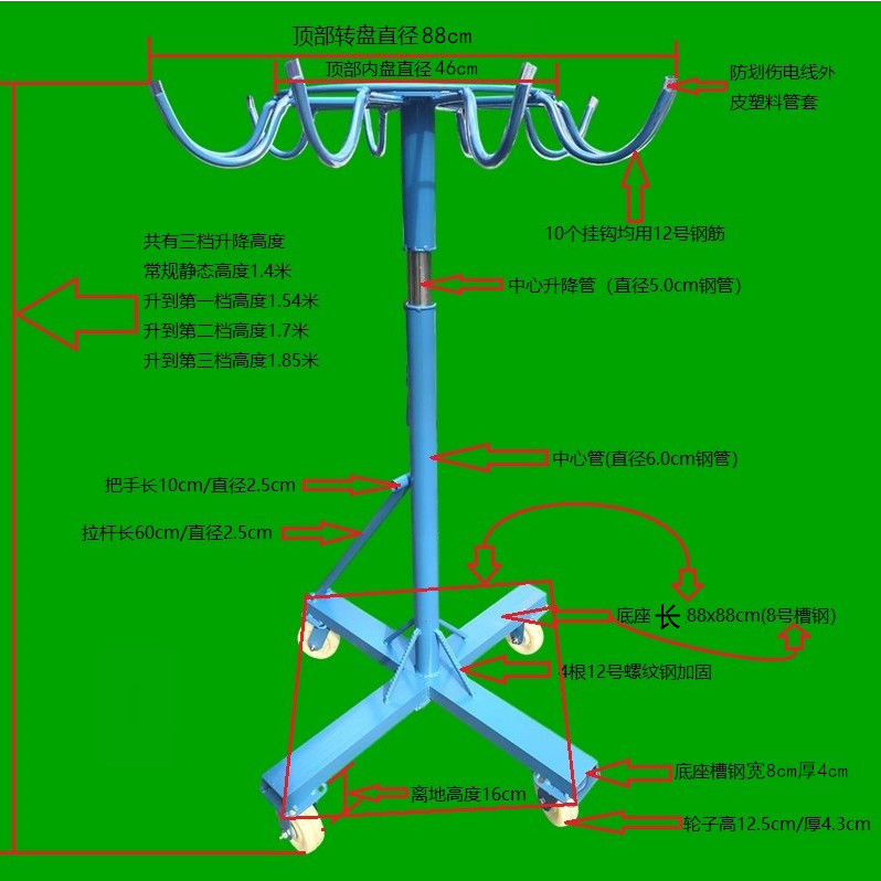 メーカー電源コード吊り下げラック、ワークショップハーネス吊り下げラック、ホイール付きワイヤー、モバイルターンオーバーラインスレッディング