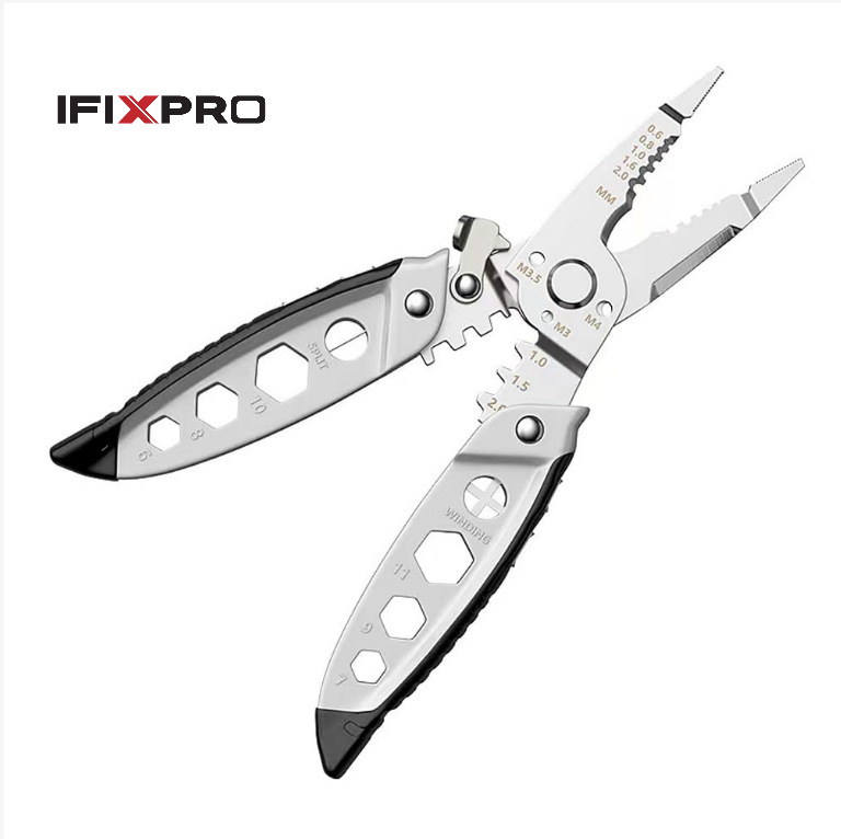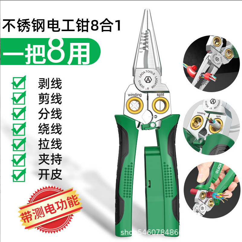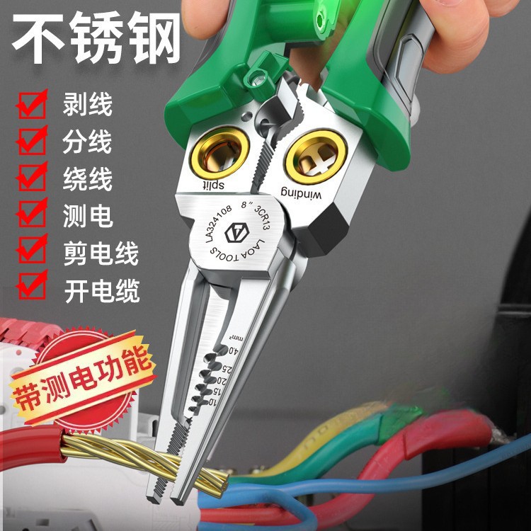 La A 8-in-1 電気測定多機能ステンレス鋼ワイヤープライヤー、ワイヤーストリッパー、ワイヤーカッター、ワイヤー分離、開口ペンチ
