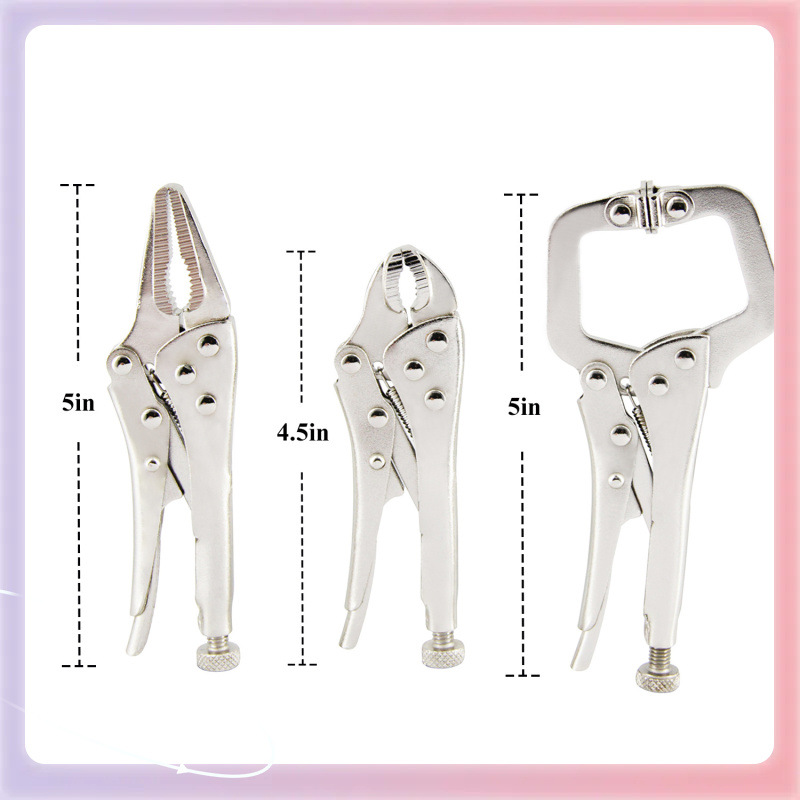 ✅3点セット炭素鋼ミニ強力ペンチ4寸丸口5寸先口5寸C型強力ペンチセット