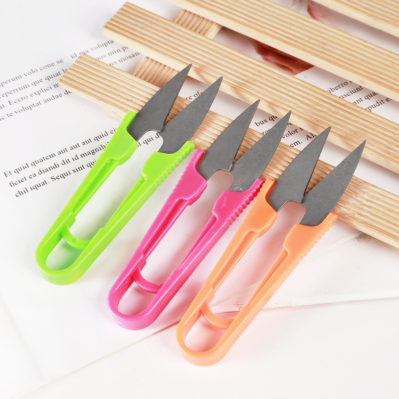 家庭用カラーu型小ハサミメーカー十字刺繍スプリング糸ハサミ単独包装裁縫糸ハサミ
