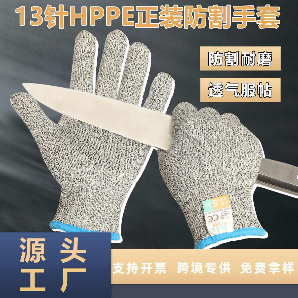 スポット13ピンen388五級切断防止手袋キッチン食品級hppe切断防止手袋5級園芸ニット