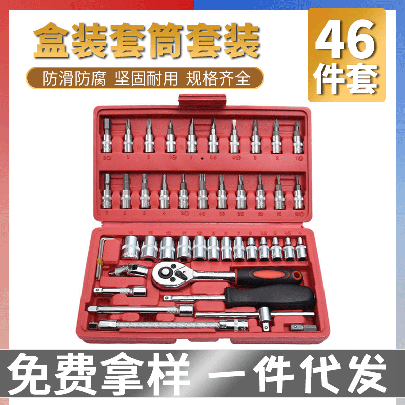 46点セットのスリーブ快速ラチェットレンチセットの自動車修理セットのツールボックスのラチェットレンチのスリーブの金属工具