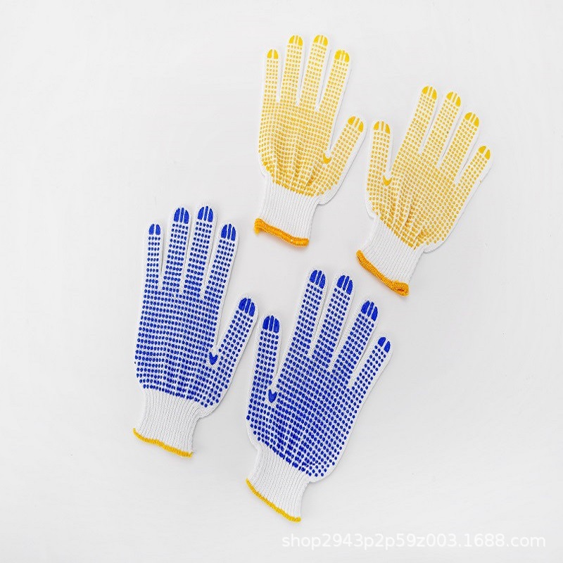 工事現場のポイントプラスチック手袋綿線労働保護作業は滑り止め点珠点ゴム手袋卸売り作業耐摩耗手袋を運ぶ