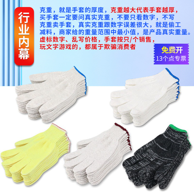 労働保護手袋卸売り綿糸紅花工業ニット白手袋糸手袋耐摩耗性厚い建築防護綿糸