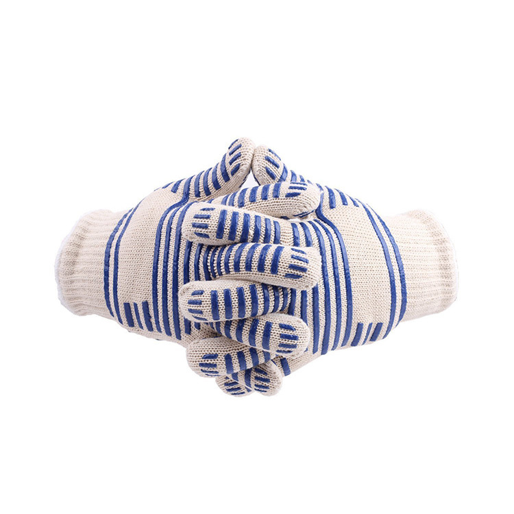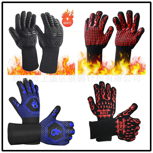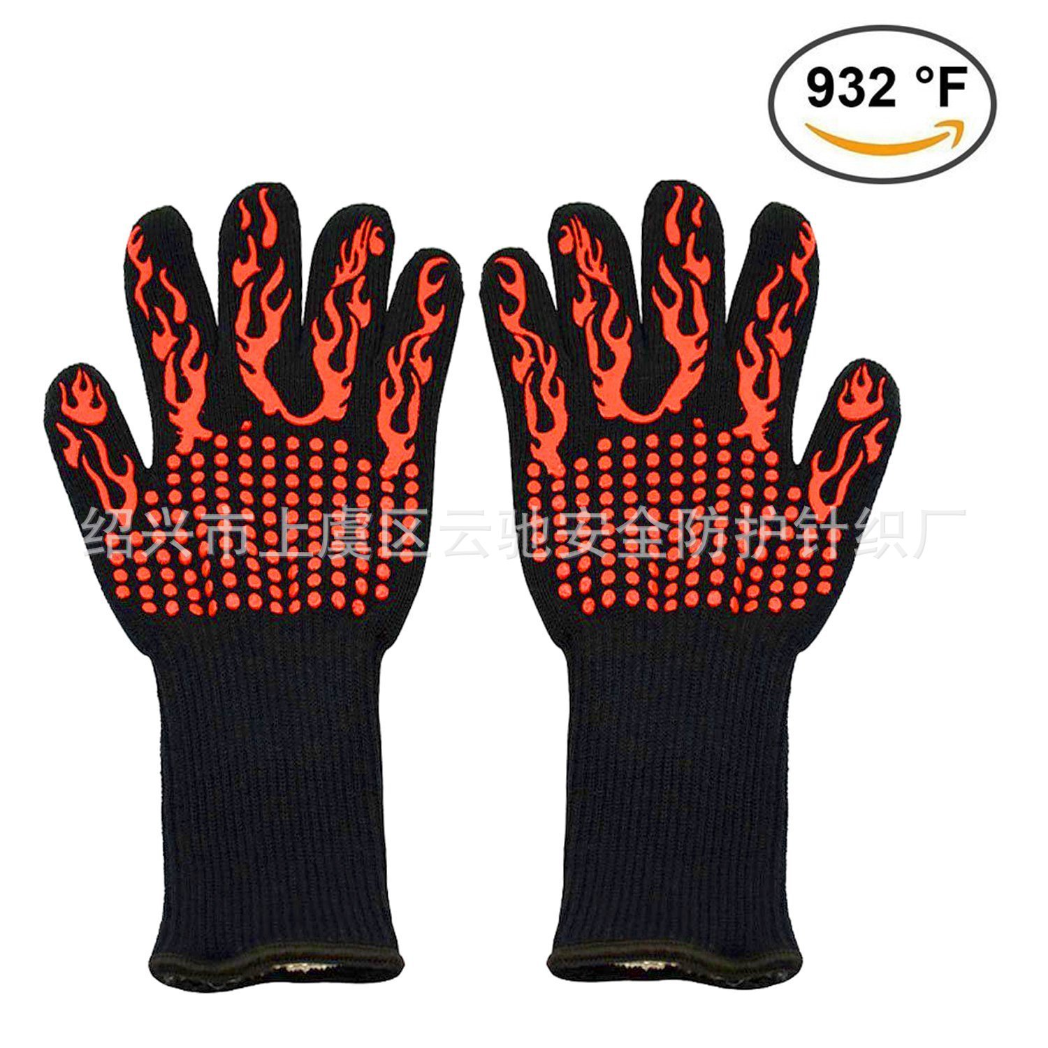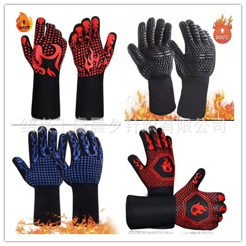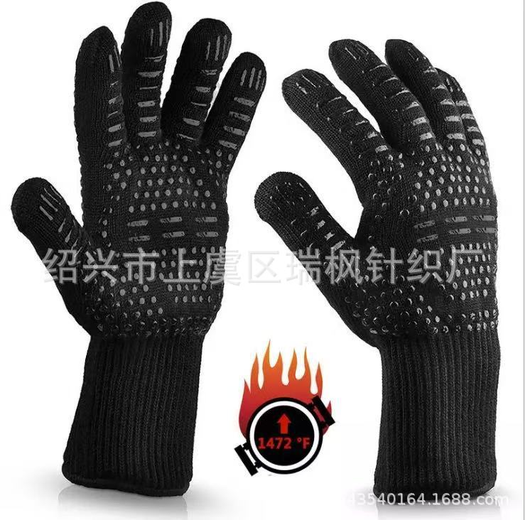 スポットメーカー卸売りbbq耐高温手袋アラミドシリコン手袋バーベキュー電子レンジ防火断熱手袋