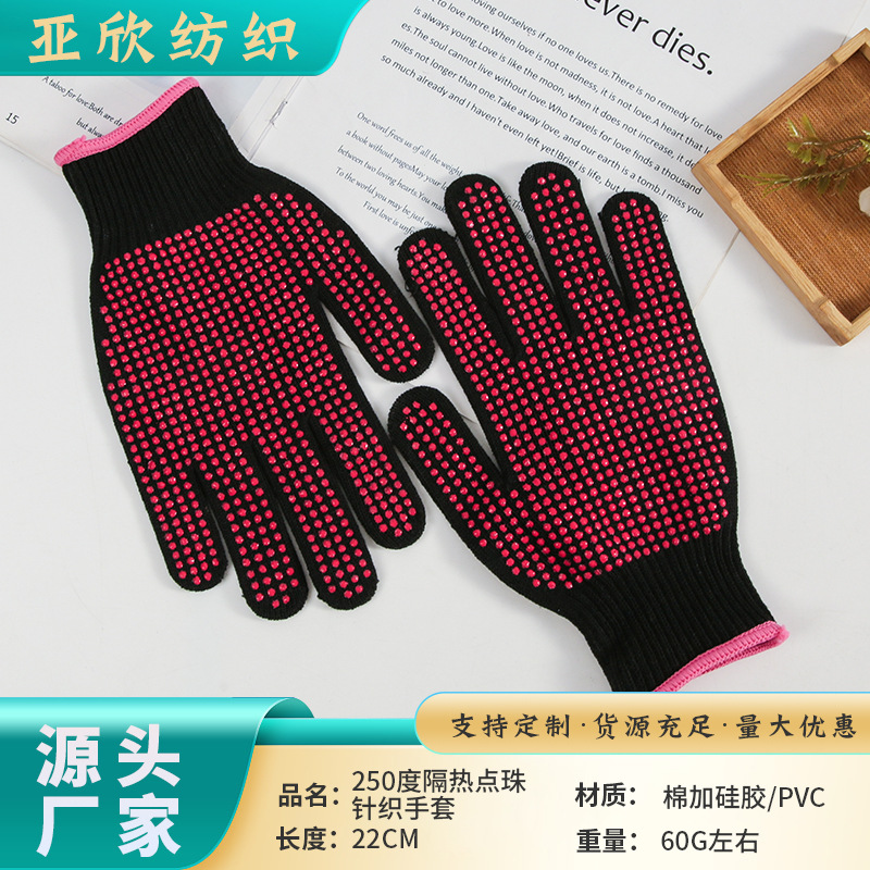 クロスボーダー高温美容手袋pvc点珠シリコン手袋カール棒ストレートパーマ断熱手袋