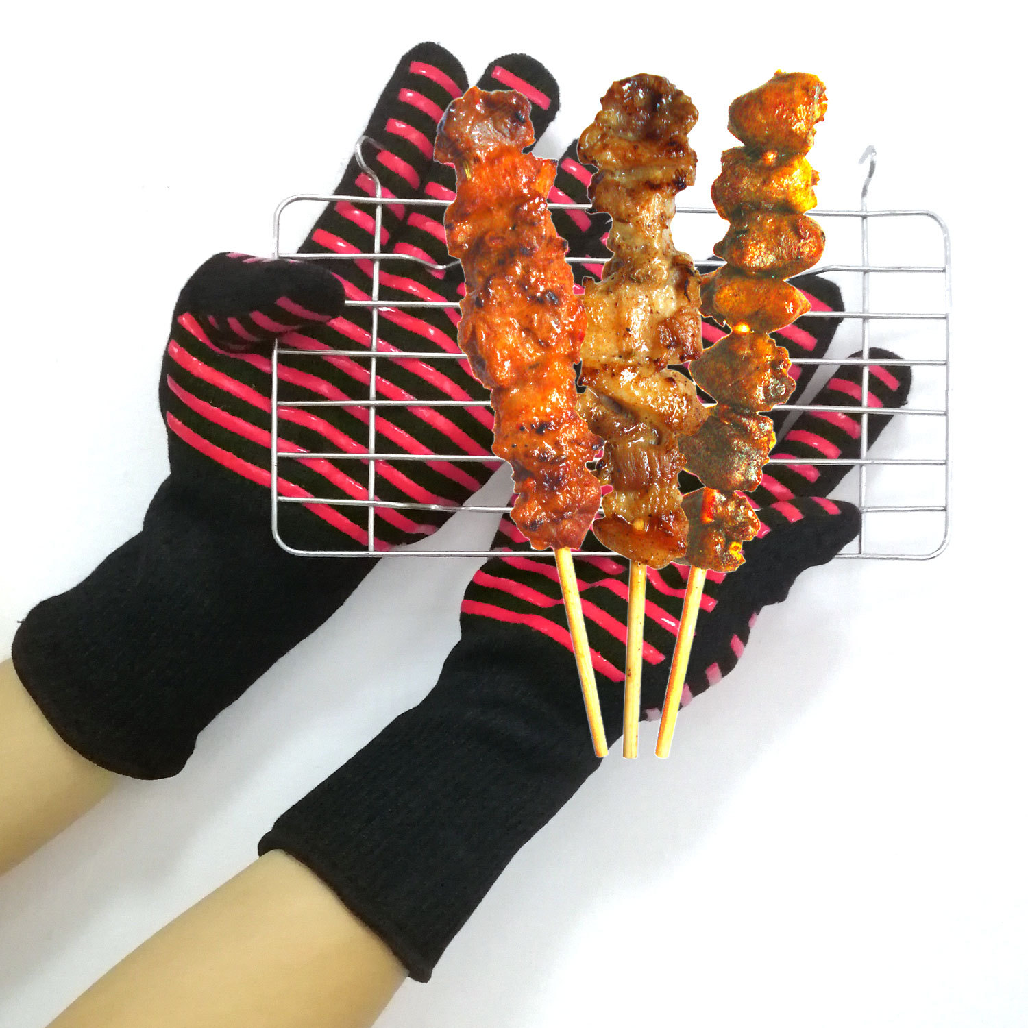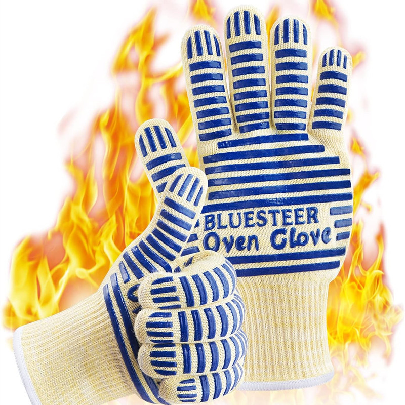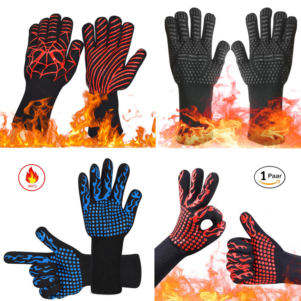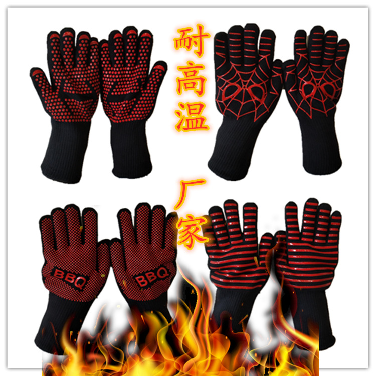 スポット爆発bbqバーベキュー手袋耐800度防火難燃断熱オーブン電子レンジ耐高温手袋