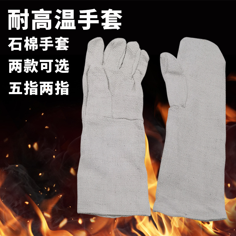 耐高温アスベスト手袋長型五本指型実験室防火難燃性労働保護手袋二本指金