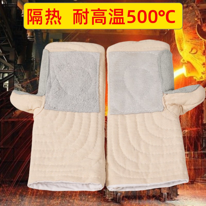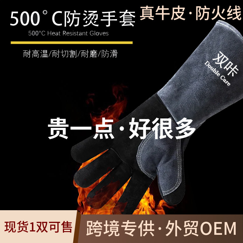 牛革耐高温手袋500度溶接工手袋断熱防熱キャンプ電気溶接厚い労働保護手袋
