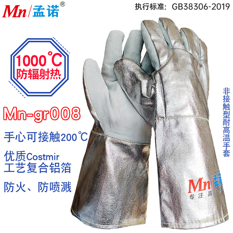 Mennon 牛革高温耐性手袋抗放射線熱 1000 アルミ箔手袋非接触手袋 Mn-gr008