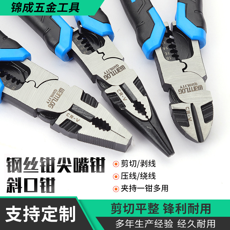 メーカー卸売り工業級多機能鋼線鉗子クロムバナジウム鋼バイス平頭尖頭省力ペンチ剥線鉗子