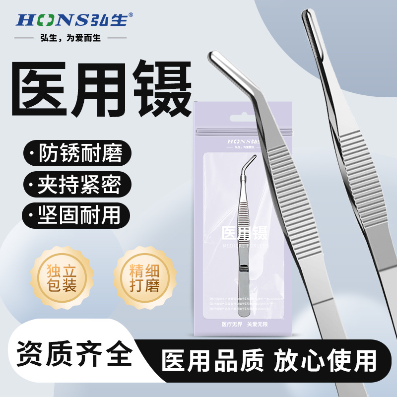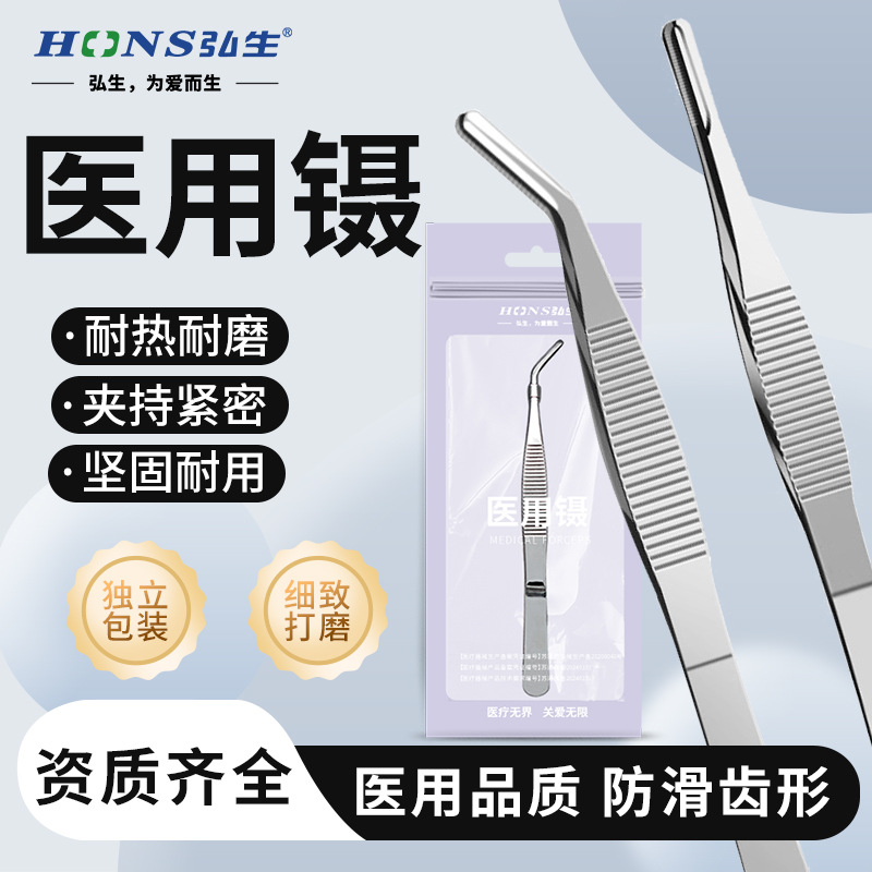 医療用ステンレスピンセットの滑り止め補助材料は、直頭エルボ医療用ピンセットステンレス製ガーゼ工具を挟む
