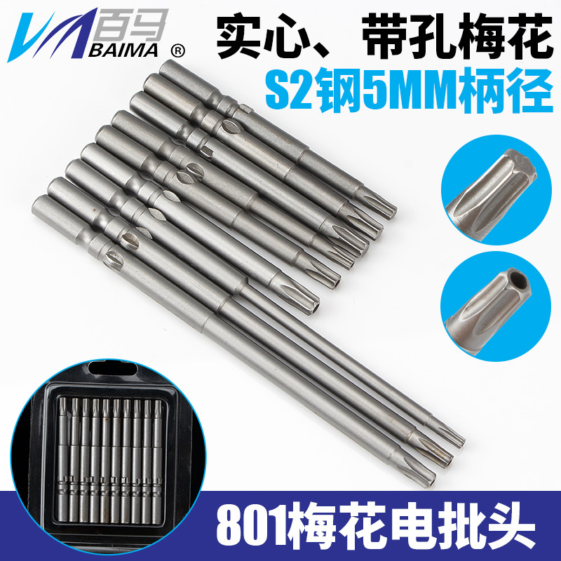 S2鋼801電気ロット穴付き中実クラブロット5mm電動ドライバーロット6星ビット60/100