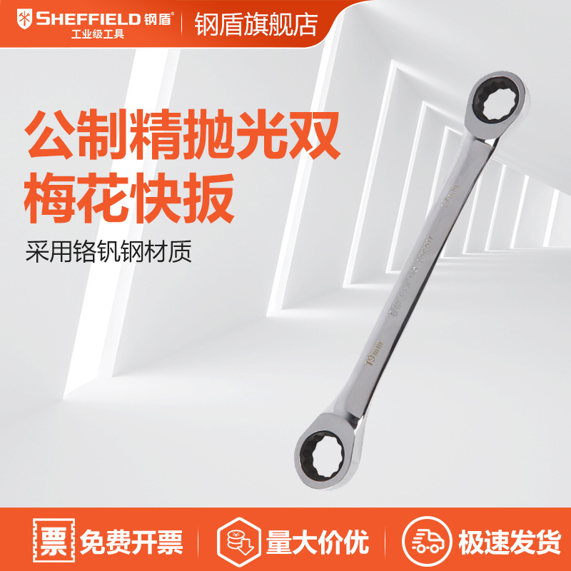 SHEFFIELD/スチールシールドs 019008メートル仕上げ研磨ダブル梅ラチェットクイックレンチ8x10mm
