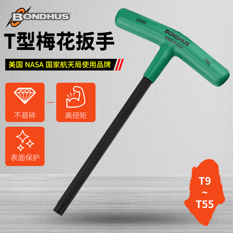 アメリカ輸入BondhusボルトンT型梅花レンチ内六花星型レンチT15/20/25/30/35