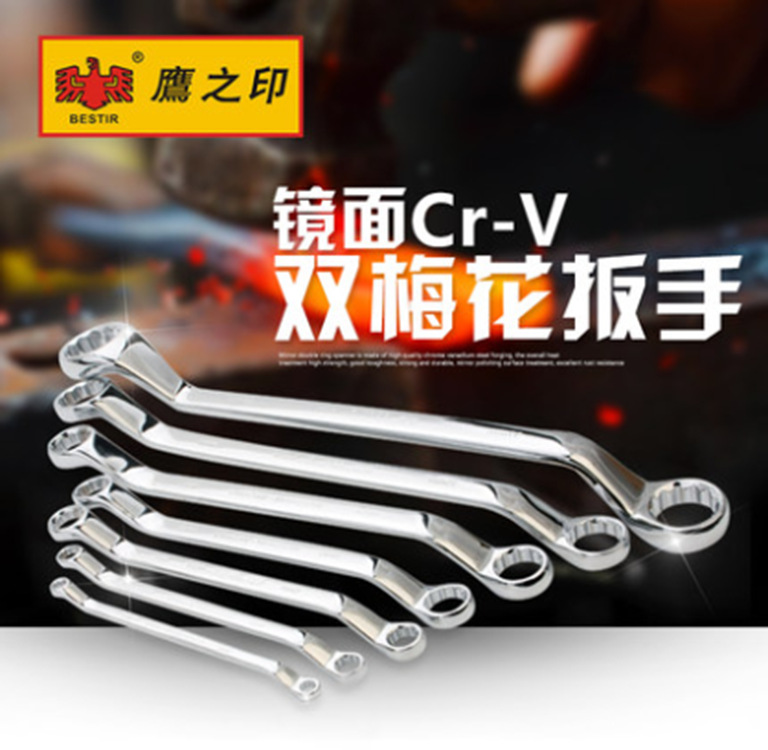 金物工具鏡面両用梅手動クロムメッキレンチセット卸売り双頭梅開口レンチ