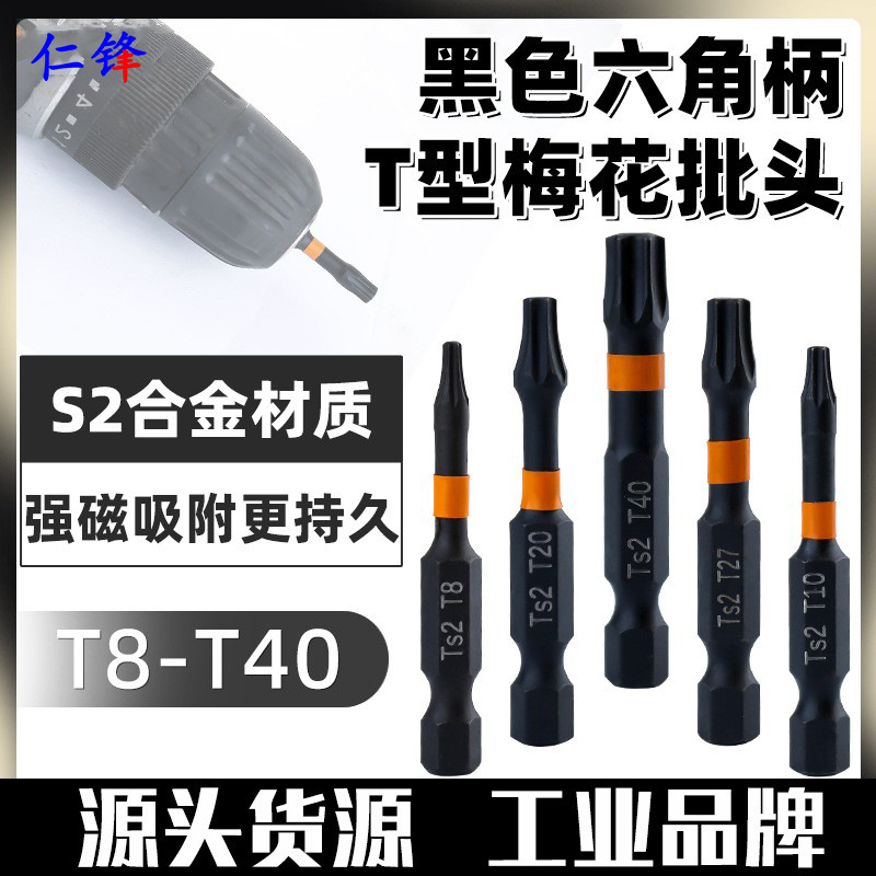 黒六角シャンク T 型梅花ビットヘッド強力な磁性 S2 合金鋼位置決めドリル六角ネジとナット