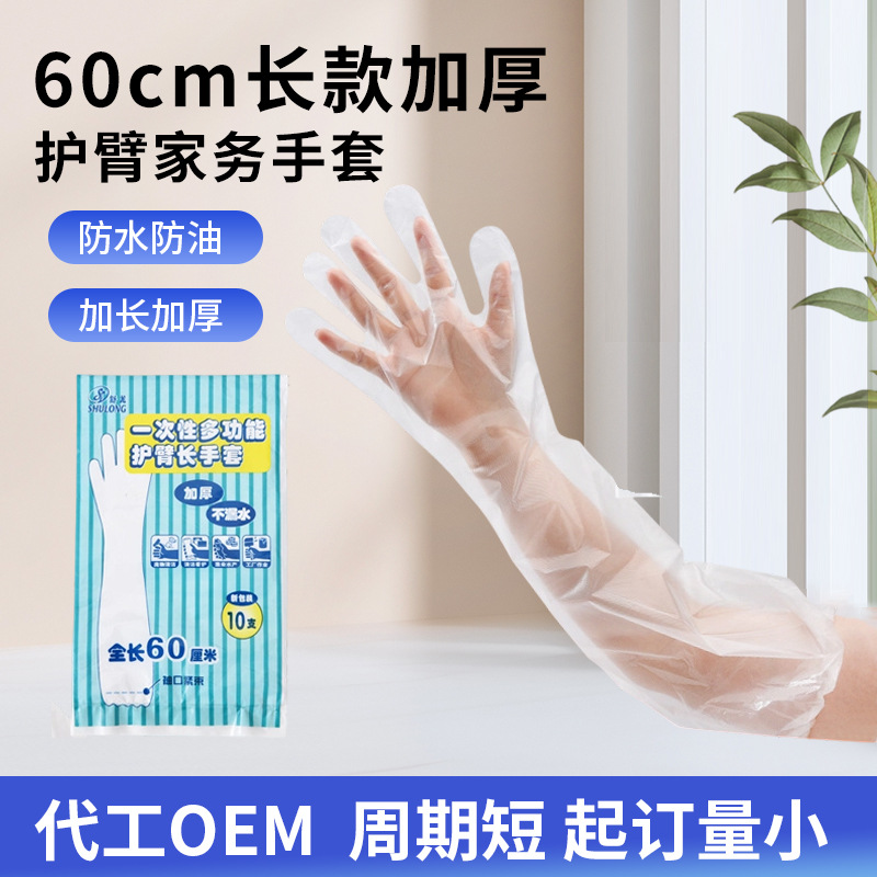使い捨て袖カバー、アームカバー、美容、食器洗い用CPE手袋、食品グレード、60cm、防水、耐油、ロングタイプ、厚手手袋