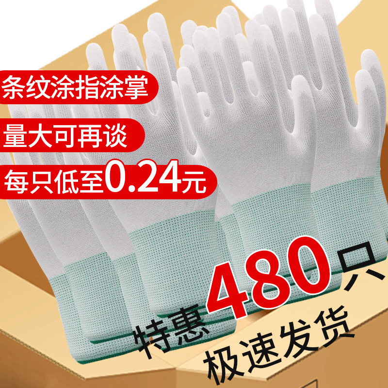 送料無料労働保護手袋 pu コーティングされた手のひらと指白防塵手袋電子工場帯電防止コーティング作業手袋