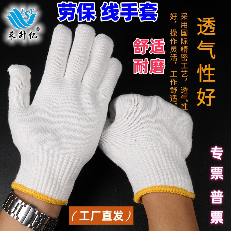 メーカーの弾性白手袋は、手芸工場の宿題、男性と女性の作業、労働保護、厚手の綿手袋、卸売国境を越えたものです。