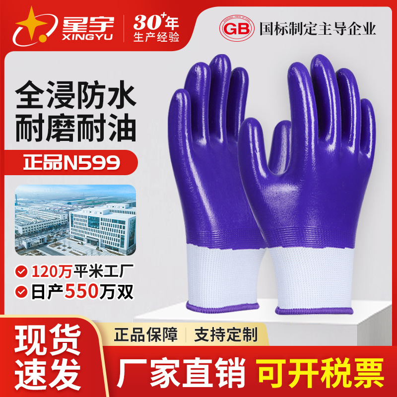 星宇労保手袋耐摩耗作業卸売りニトリルゴム全浸工事現場の仕事用の滑り止め作業手袋