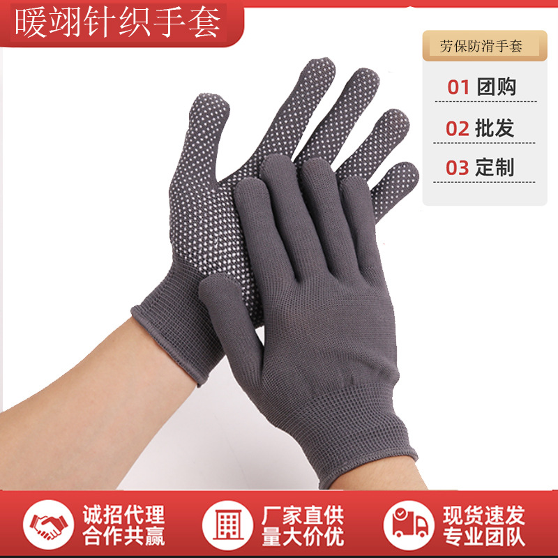 労働保護手袋綿糸ナイロン防護線手袋滑り止め厚いニット耐摩耗手部男性工事現場で働く