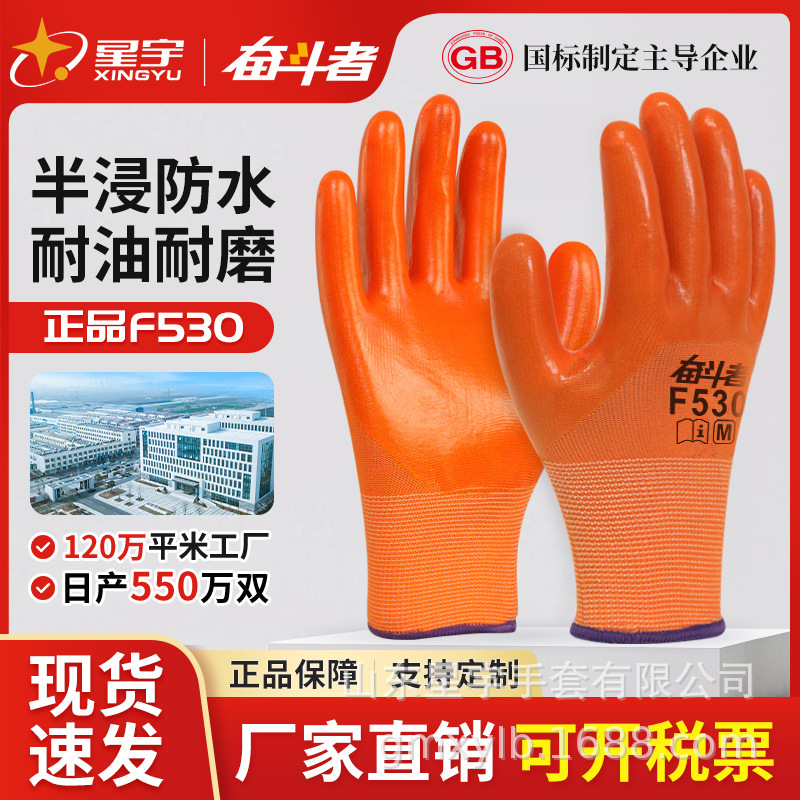星宇掌中星l866全浸糊二重浸透防止労働保護手袋工事現場耐摩耗性滑り止め通気防水