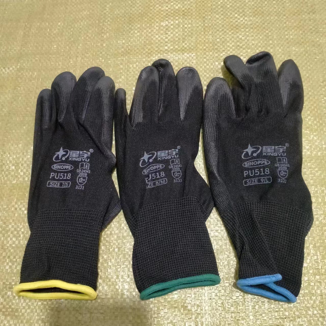 星宇pu518黒色塗装手袋灰色ナイロンpuコーティング通気滑り止め屋外釣り手袋