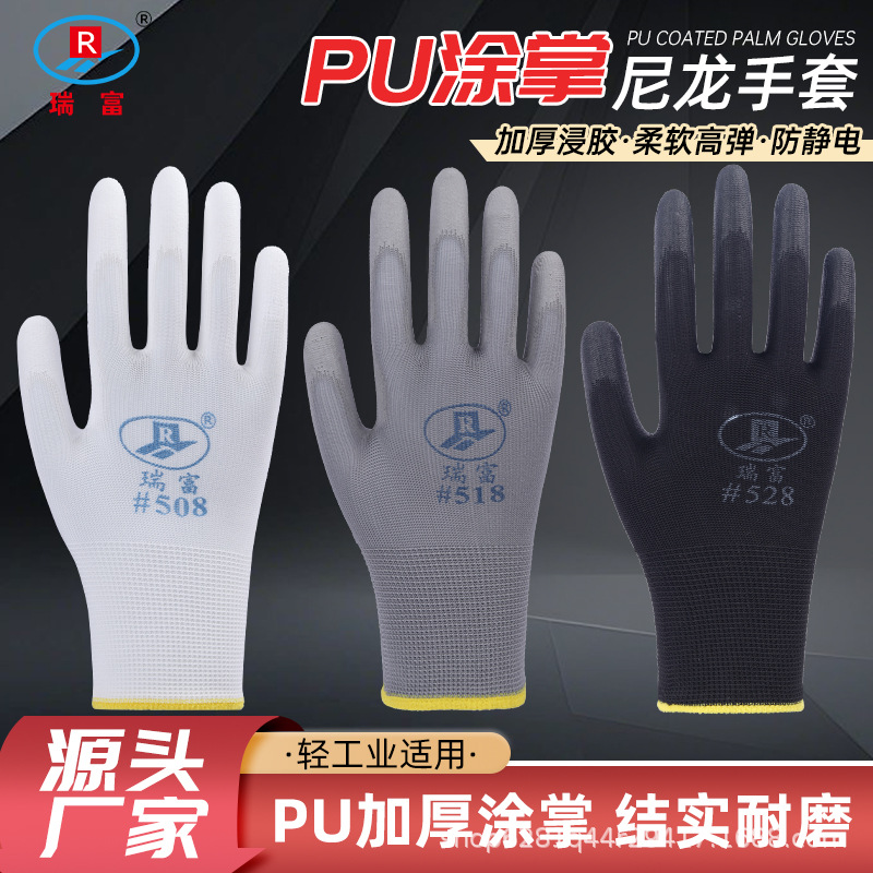 Ruifu PU コーティングされた手のひら労働保護手袋白ナイロン手袋防塵帯電防止通気性耐摩耗性 PU コーティングされた指