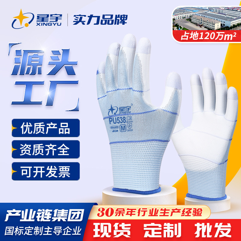 星宇手袋労働保護耐摩耗性PU538軽薄通気電子工場のアップグレード滑り止め作業労働保護手袋
