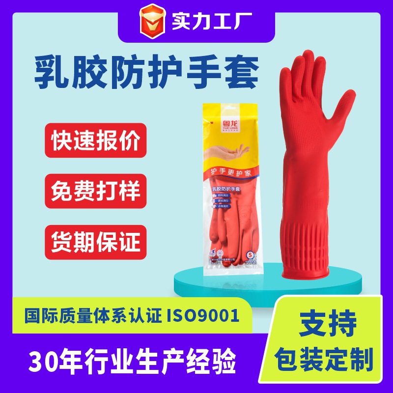 粤龍家事ラテックス手袋酸アルカリ手袋家庭用洗濯皿洗い手袋ゴム手袋