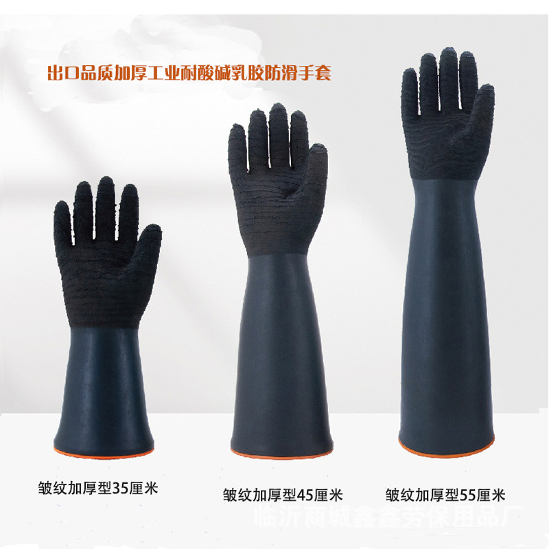 工業用ゴム手袋、耐酸性および耐アルカリ性、厚みのある天然ラテックス、化学強度、高弾性、滑り止め、長時間使用可能な手袋、耐食性