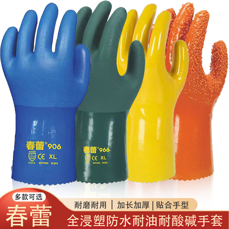 春蕾966耐油酸アルカリ手労保工業浸塑滑り止め防護防水殺魚フロストゴム手袋