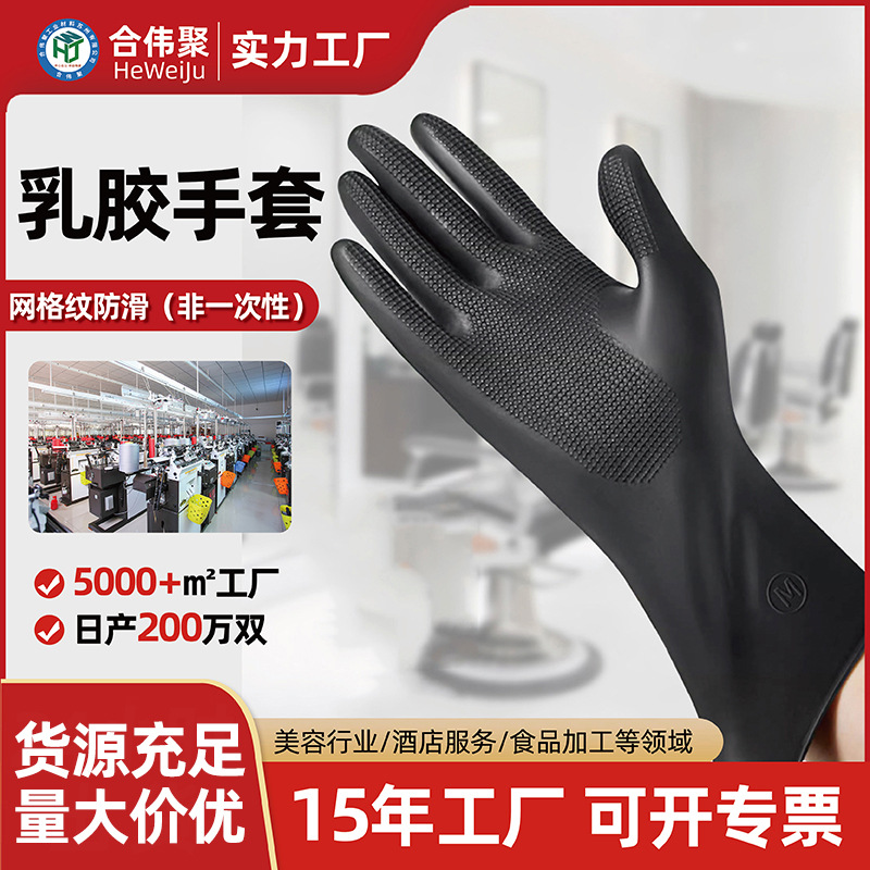ラテックス手袋厚い耐久性黒色ゴム防水滑り止め専門パーマ洗車保護専用手袋