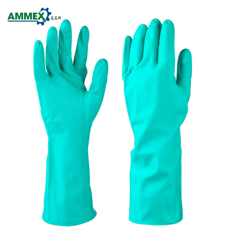 エマスグリーンニトリルゴム保護手袋ゴム防化耐油酸アルカリ溶剤工業化学工業実験労働保護